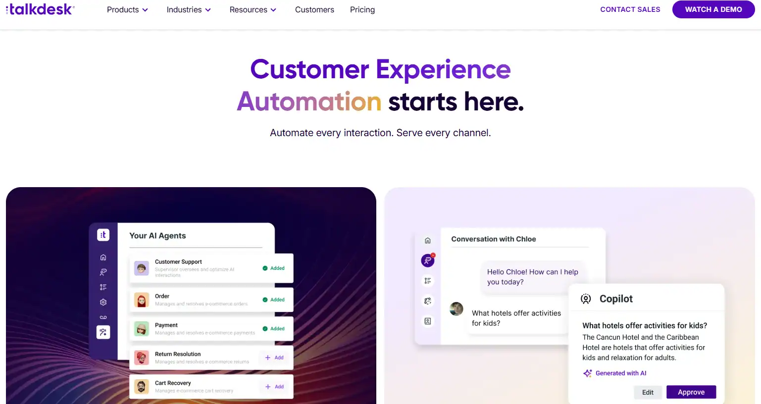 Talkdesk utilizes automation and machine learning to streamline workflows, assist agents in real-time, and enhance overall CX operations. It’s ideal for companies looking to reduce manual processes and deliver faster, more accurate service at scale.