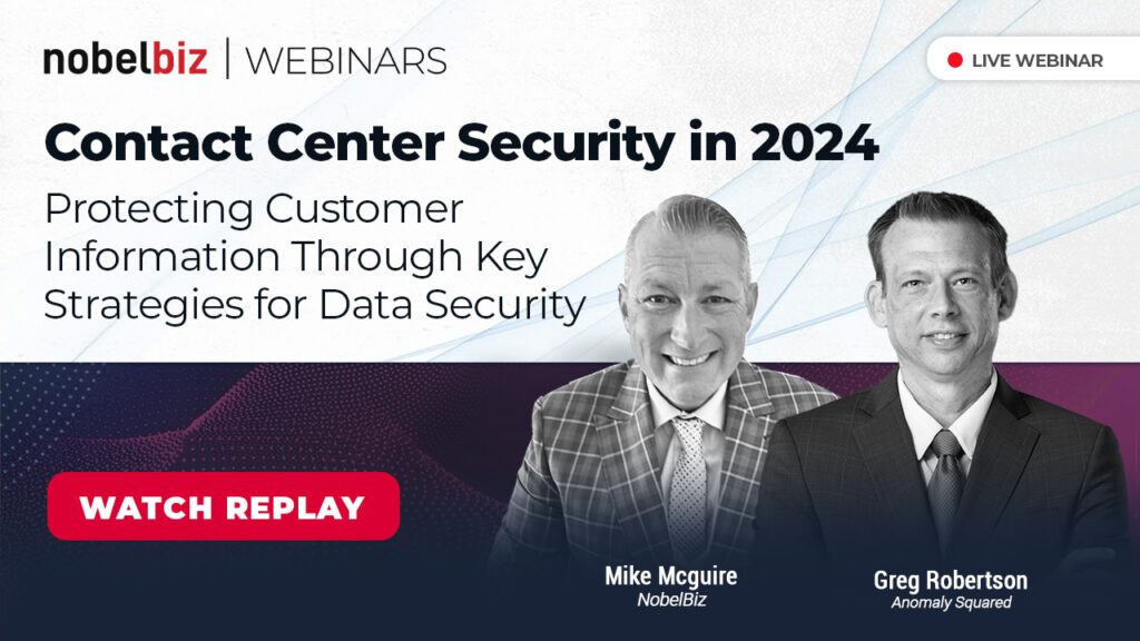 Discover the critical importance of data security in call centers in our upcoming webinar. Join us for an in-depth exploration of the latest strategies and best practices to protect sensitive information and ensure compliance with regulatory standards. Hosted by an industry expert Michael McGuire, from NobelBiz, and special guest Greg Robertson, Director of IT at Anomaly Squared. You will gain exclusive access to cutting-edge knowledge and practical solutions to enhance your call center’s data security.